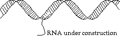 Suppose we need to unzip the helix, and make a copy of a specified strand. What actually happens is that a hole is made (by breaking the bonds between base pairs, and we walk along the chain, matching up little bits of RNA as we go:
