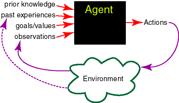 - Past experience: which actions are useful and when, what objects are there, how its actions
