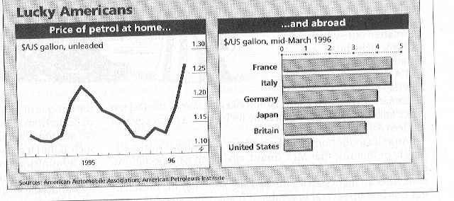 TEXT:"The price of petrol has reached its highest level in years, but when compared with other industrialized countries it is the lowest"