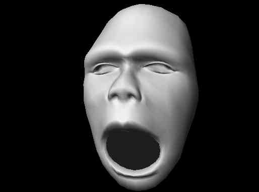 The following exercise shows how a few manipulations of the surface can alter the head shape. A significant advantage to hsplines is that the jaw animation of the head does not have to be re-assigned.