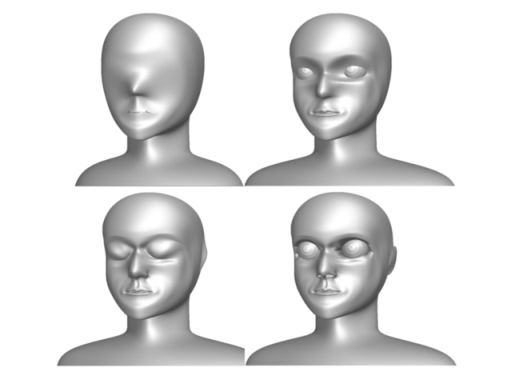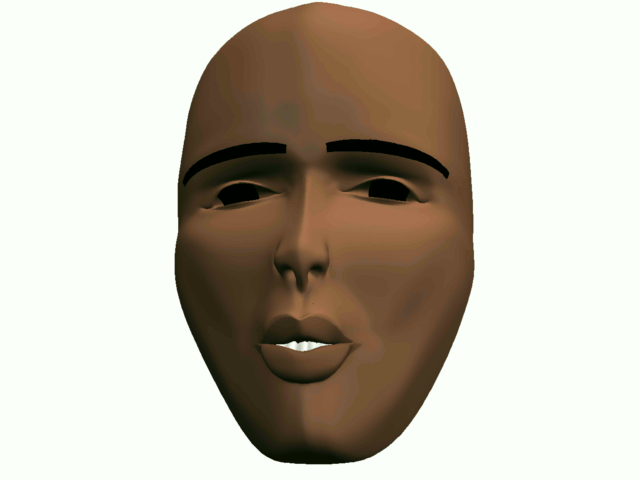 The model was created in SoftImage, (Thanks to Chris Welmann and Ian Pearson for lending us an early prototype for the character "Mouse" in the YTV television series "ReBoot"). The original standard bicubic B-spline was imported to the "Dragon" editor and a hierarchy automatically constructed. The surface was attached to a jaw to allow it to open and close the mouth. Groups of control vertices were then moved around to created various facial expressions.