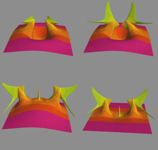 A hierarchical B-splines surface is created by repeated application of local refinement of an initial B-spline surface (either a plane, cylinder or torus). The dragon head below was constructed from a torus. The figures below show the 8 levels in the hierarchy, starting from that original toroidal shape.