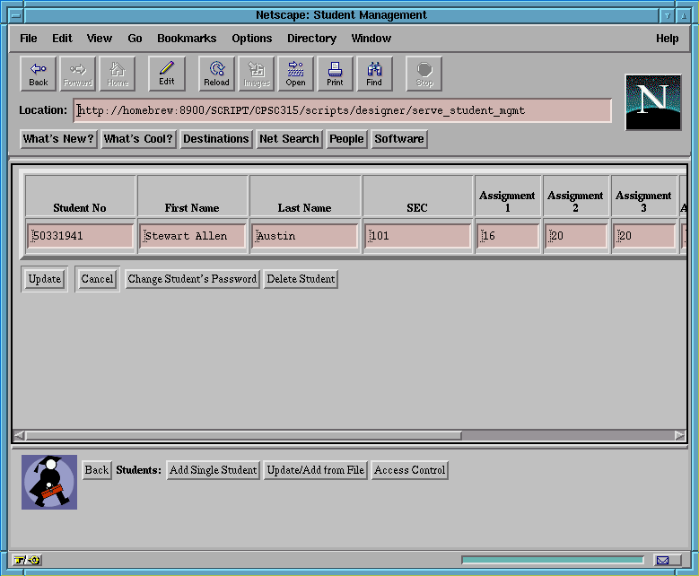 Student Homepage Creation Tool. Students are able to use WebCT's simple authoring interface to construct personal homepages containing images, text and links. The interface provided to the students for the construction of a homepage is similar to that presented to designers for homepage and toolpage construction. No knowledge of HTML is required. For security reasons, the course designer is also capable of editing any student homepage.