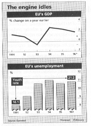TEXT: "To keep employment rates level, the European Union must produce 2% more a year".
