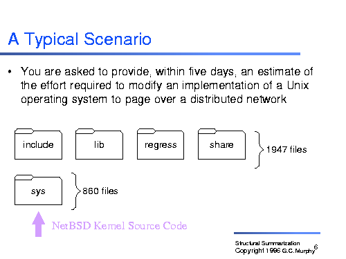 Lightweight Structural Summarization as an Aid to Software Evolution: Slide 6 of 39.