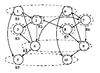 eclass1 = [1 2 3 4 5]; eclass2 = [1 6 7 4 5];The dotted bubbles represent the equivalence classes. Node 7 is the representative node for equivalence class 6, and node 8 is the rep. for class 7, so we need to write