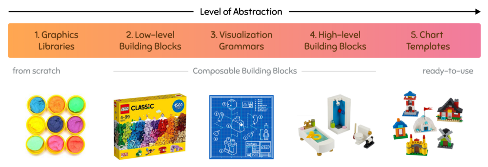 - Level of abstraction: How much do you need to customize when you map data values to graphical marks and encoding channels? (design flexibility/expressivity)