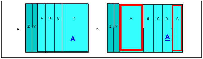 Proposed Infovis SolutionThe task of visualizing a web browser's history can be tackled using treemaps. A description and history of treemaps is maintained by Ben Schneiderman [5]. Squarified treemaps [6] maintain node shapes and sizes that are appropriate for displaying information. Nested treemaps show the underlying tree structure of a treemap by nesting child nodes inside parent nodes, leaving a small border to reveal the context. I propose a new kind of treemap, which can be "unpacked" on request to reveal the underlying tree structure, thus improving the context problems inherent in treemaps [Figure 1]. This feature is also important for my task, as parent nodes are not simply containers for data, they are web pages themselves, and displaying them as an entire node, rather than just borders, will allow their information to be displayed. Implementing this feature will also require distortion techniques, for preserving the treemap structure while increasing the number of nodes displayed [Figure 2], and possibly zooming. Nodes of the treemap will display identifying bits of the web pages they represent -- deciding which bits will convey the most information is part of the infovis challenge. Cycles in the graph will be handled by maintaining only one node for each page that is allowed to have children (which is designated as the instance of the page that was visited first), with other instances of the page becoming leaf nodes and being highlighted to indicate that they are multiples [Figure 3].