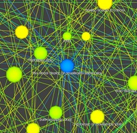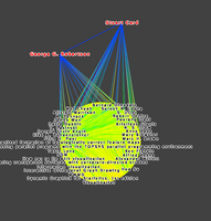 We pick a single author to investigate, in this case George Robertson. First, we interactively select that node by hitting Control-F for the find panel, choosing the {\it titleshort} property, the {\it =} filter, and the regular expression {\it G.*Rob.*}. We then quickly check to see how he is connected to the entire graph by temporarily moving that node away from the others to see roughly how many edges are attached to it, in the first picture.
